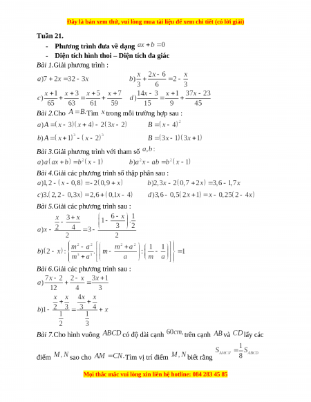 - Phương trình bậc nhất và cách giải - Diện tích hình thang