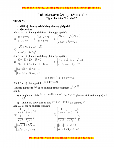 Bài tập tuần kì 2 Toán lớp 9 có lời giải