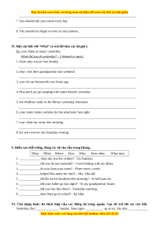 __________________________________________________________________________ V. Đi n ề vào ch tr ỗ n ố g, dùng các t c ừ ho s n ẵ trong khung. What When Where How Who How often What time