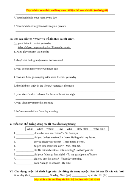 __________________________________________________________________________ IV. Đặt câu h i ỏ v i
