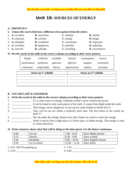 Unit 10: SOURCES OF ENERGY A. PHONETICS
