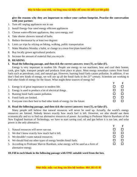 give the reasons why they are important to reduce your carbon footprint. Practise the conversation