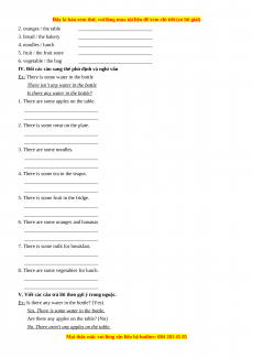 III. Làm câu với các từ gợi ý, dung cấu trúc “There is + danh từ không đếm được” hoặc “There are