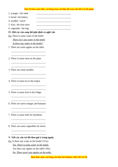 IV. Đổi các câu sang thể phủ định và nghi vấn