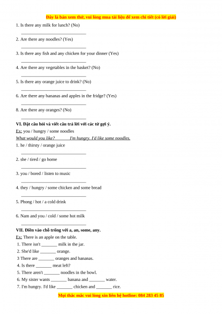 _____________________________ 6. the boy / a new schoolbag _____________________________ 7. you / sit down _____________________________ 8. Huong / some orange juice. _____________________________