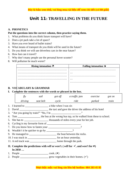 Unit 11: TRAVELLING IN THE FUTURE A. PHONETICS