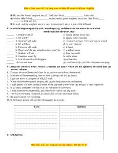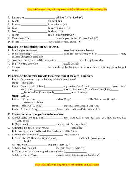 ệ đ xe ể m chi ti t ế (có l i ờ gi i ả ) 3. Restaurants sell healthy fast food. () 4. People eat meal. () 5. Farmers have animals. () 6. Food be easy to grow. () 7. Food be cheap. () 8. People take a lot of vitamins. () 9. Vietnamese food