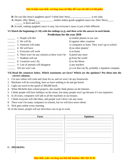 _______ 9. Lots of animals will disappear i) any teachers _______ 10.Cars won’t use