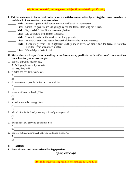 II. Make short exchanges about travelling in the future, using prediction with will or won’t. number 0 has
