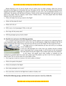 1. How long does it take the A2 plane to fly from London to Sydney?