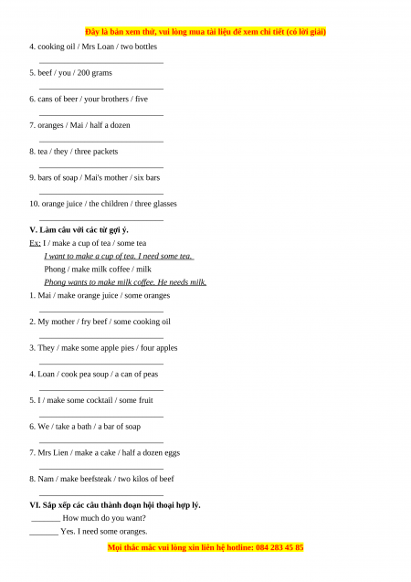 7. oranges / Mai / half a dozen ______________________________ 8. tea / they / three packets ______________________________
