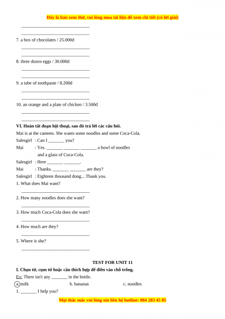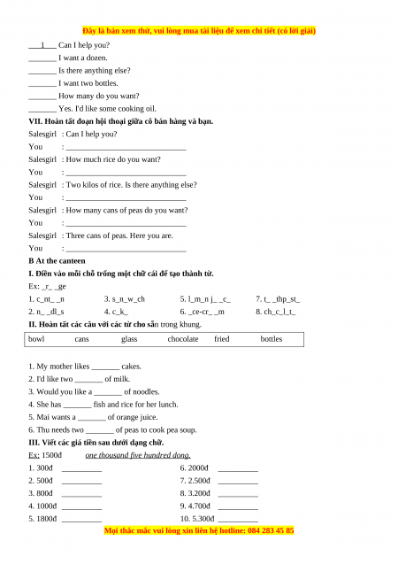 VII. Hoàn tất đoạn hội thoại giữa cô bán hàng và bạn.