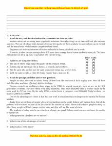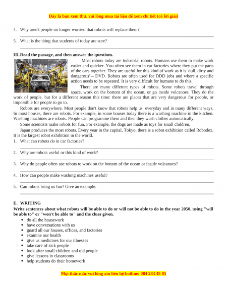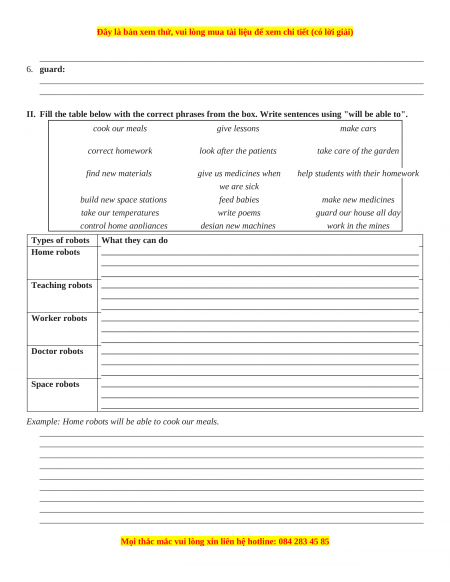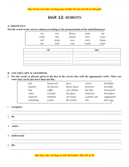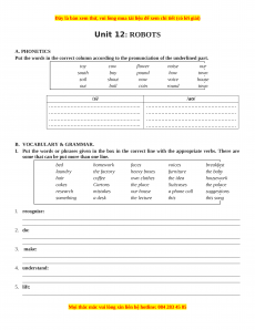 Bài tập Unit 12: ROBOTS - Giáo viên Lưu Hoằng Trí đầy đủ đáp án