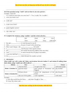 IV. Complete the sentences, using "couldn't" and the verbs in the box. find finish go hear listen play sleep understand 1. My dad to work because he was ill. 2. John