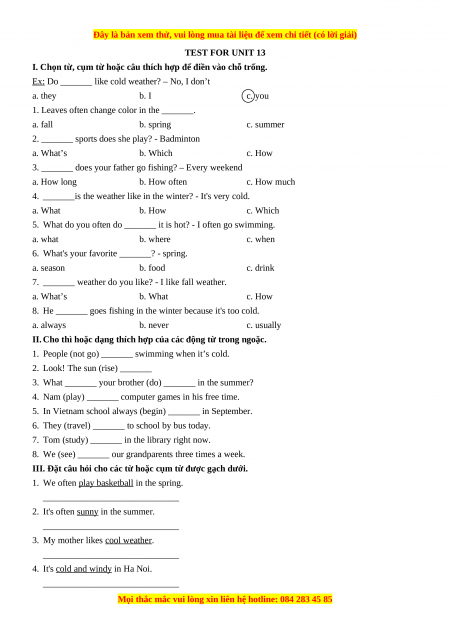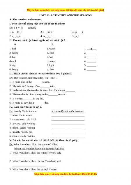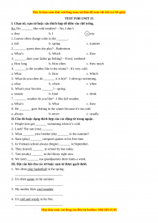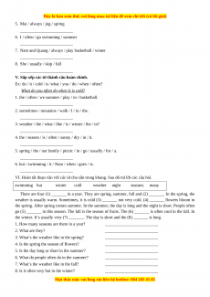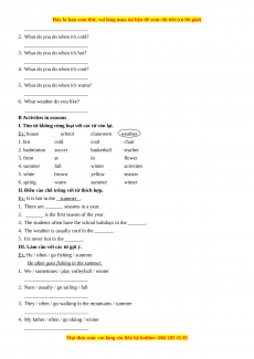 Bài tập Unit 13: ACTIVITIES AND THE SEASONS - Giáo viên Mai Lan Hương đầy đủ đáp án