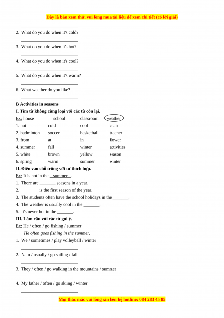 5. What do you do when it's warm? _________________________ 6. What weather do you like? _________________________ B Activities in seasons