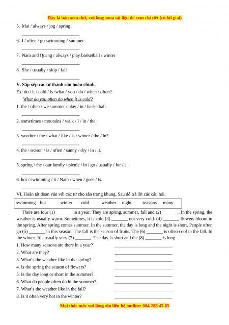 7. Nam and Quang / always / play basketball / winter _________________________ 8. She / usually / skip / fall _________________________