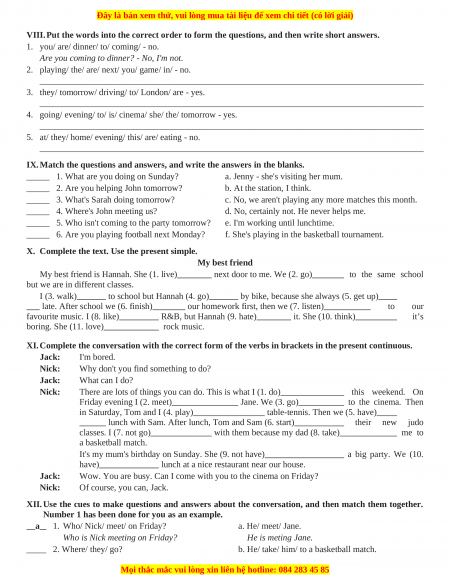 XI. Complete the conversation with the correct form of the verbs in brackets in the present continuous.