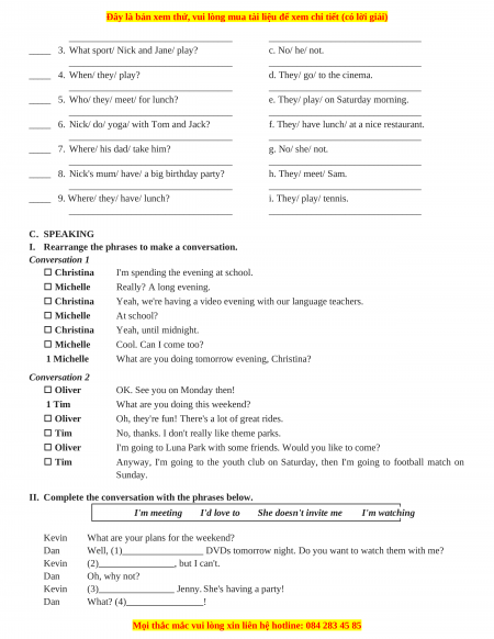 I. Rearrange the phrases to make a conversation. Conversation 1 Christina