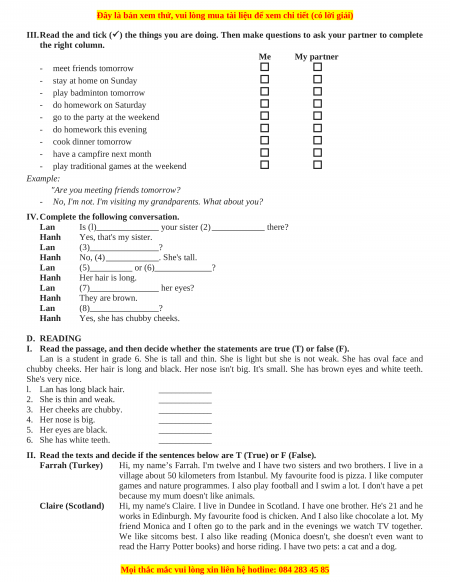 5. Miss Huong's face is round. _________________________ 6. Miss Thanh's legs are long. _________________________