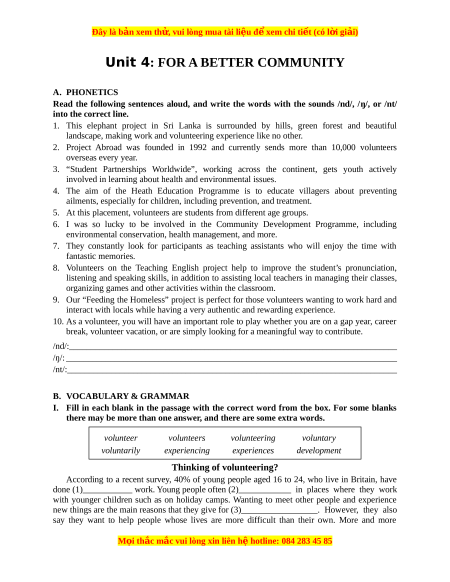 Unit 4: FOR A BETTER COMMUNITY A. PHONETICS