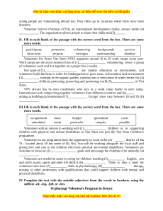 there may be more than one answer, and there are some extra words. volunteer volunteers volunteering voluntary voluntarily experiencing experiences development