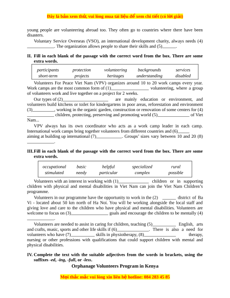 II. Fill in each blank of the passage with the correct word from the box. There are some extra words. participants protection volunteering backgrounds services short-term projects heritages understanding disabled