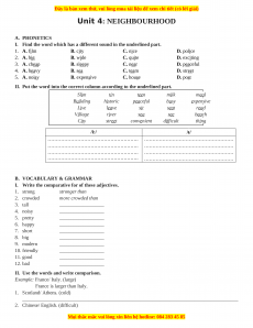 Unit 4: NEIGHBOURHOOD A. PHONETICS