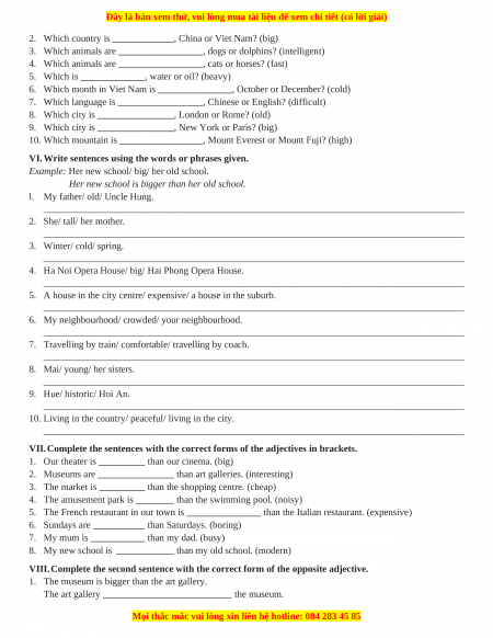 VII. Complete the sentences with the correct forms of the adjectives in brackets.