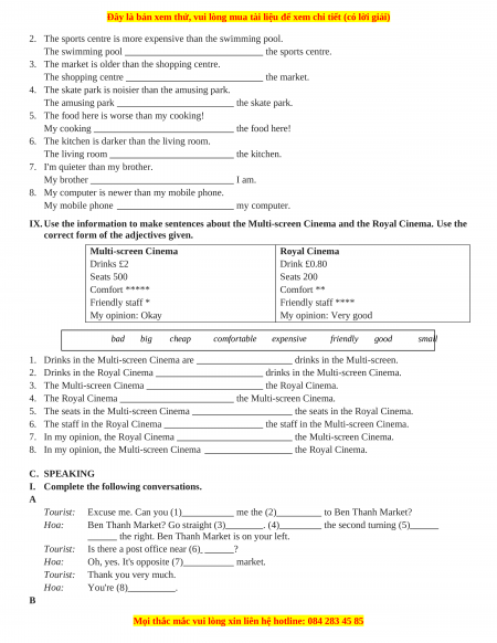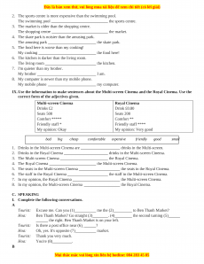 correct form of the adjectives given. Multi-screen Cinema Royal Cinema Drinks £2 Drink £0.80 Seats 500 Seats 200 Comfort ***** Comfort ** Friendly staff * Friendly staff **** My opinion: Okay My opinion: Very good bad big cheap comfortable expensive friendly good small