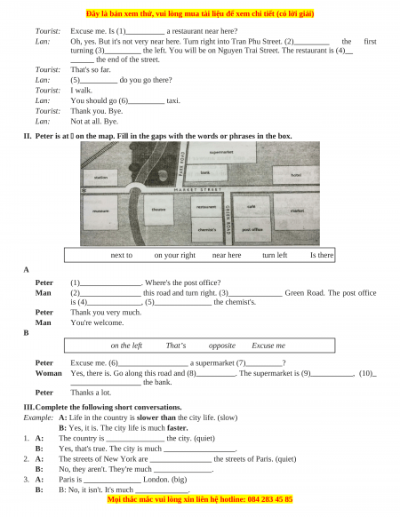 I. Complete the following conversations. A Tourist: Excuse me. Can you (1) me the (2) to Ben Thanh Market? Hoa:
