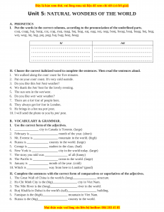 Unit 5: NATURAL WONDERS OF THE WORLD A. PHONETICS