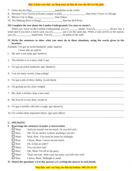 I. Rearrange the sentences to make a conversation. Mum