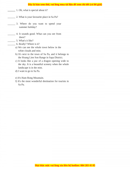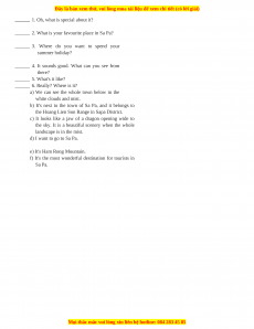 the sky. It is a beautiful scenery when the whole landscape is in the mist. d) I want to go to Sa Pa. e) It's Ham Rong Mountain.