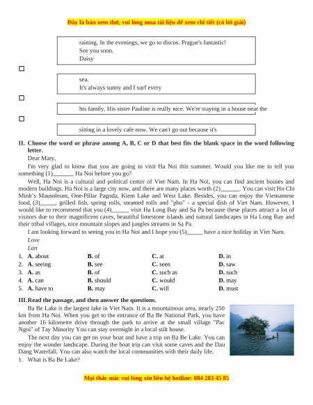 I am looking forward to seeing you in Ha Noi and I hope you (5) have a nice holiday in Viet Nam.
