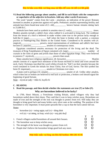 VI. Read the following passage about amulets, and fill in each blank with the comparative