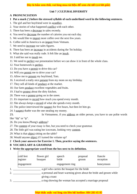 Unit 7 | CULTURAL DIVERSITY A PRONUNCIATION