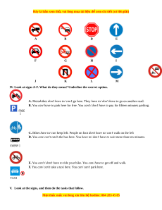 7. No Stopping & No Parking __________ 3. Go right only _____________ 8. Overtaking prohibited __________ 4. No Parking _____________ 9. Trucks prohibited __________