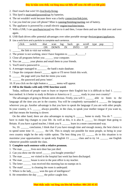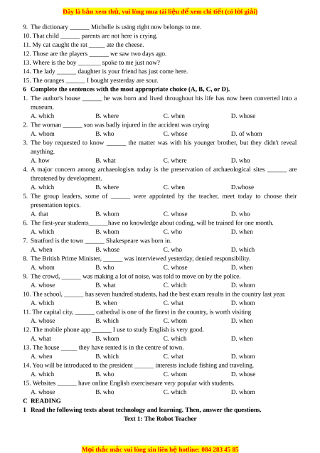 15. Websites ______ have online English exercisesare very popular with students. A. whose B. who C. which D. whom C READING