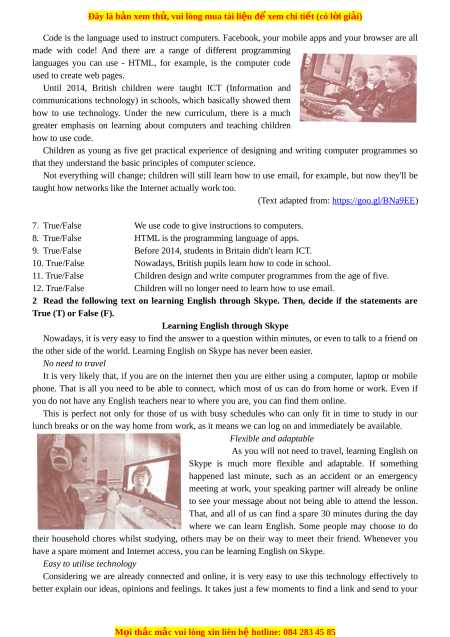 2 Read the following text on learning English through Skype. Then, decide if the statements are
