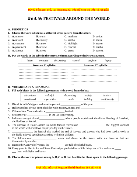 Unit 9: FESTIVALS AROUND THE WORLD A. PHONETICS