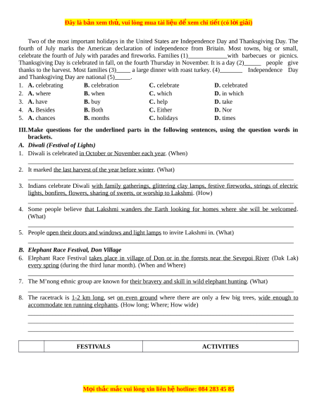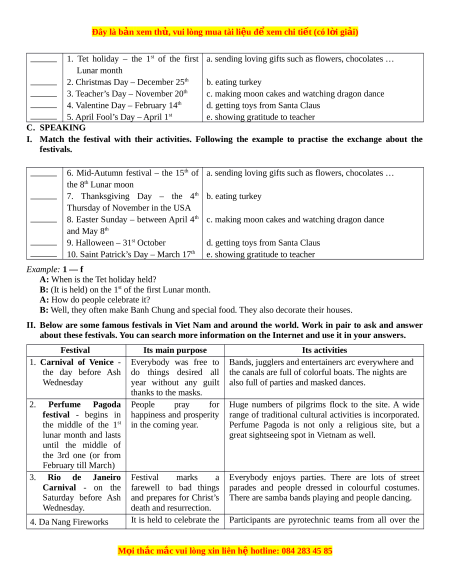 II. Below are some famous festivals in Viet Nam and around the world. Work in pair to ask and answer