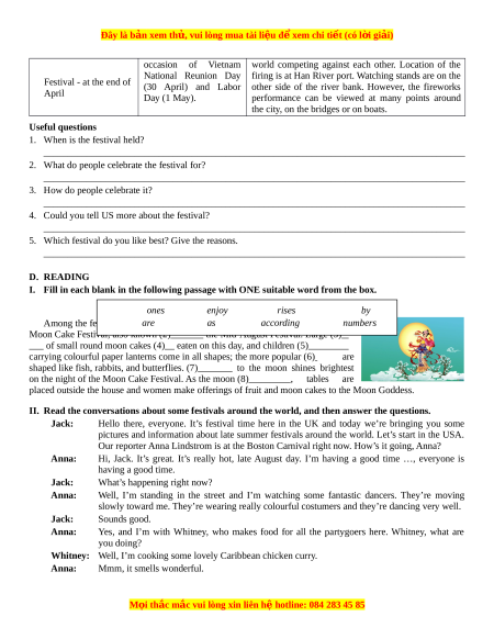 I. Fill in each blank in the following passage with ONE suitable word from the box. ones enjoy rises by Among the festivals celebra