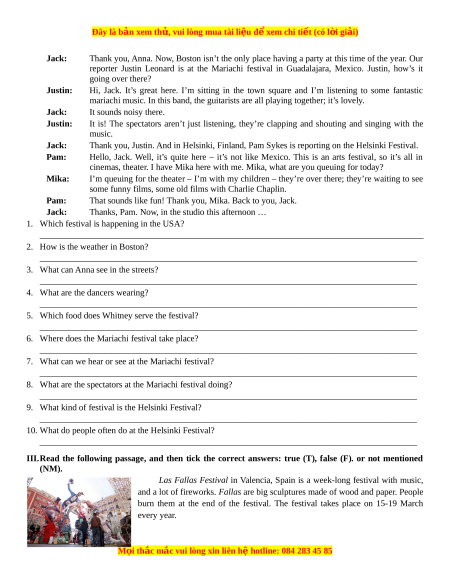 II. Read the conversations about some festivals around the world, and then answer the questions. Jack: