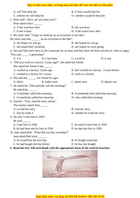 ệ đ xe ể m chi ti t ế (có l i ờ gi i ả ) A. will Tom help her B. if Tom would help her C. whether he will help her D. whether would he help her