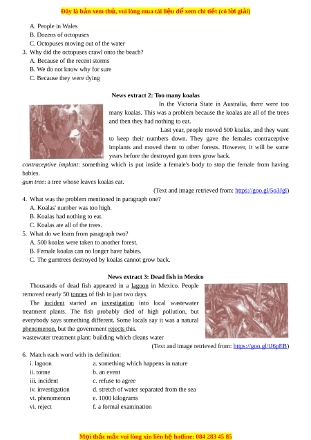1 Read the following news extracts about animals and the natural environment. Then, answer the