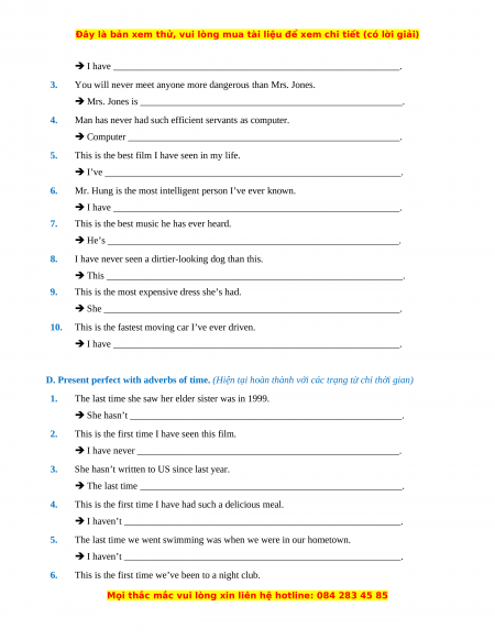D. Present perfect with adverbs of time. (Hiện tại hoàn thành với các trạng từ chỉ thời gian) 1.