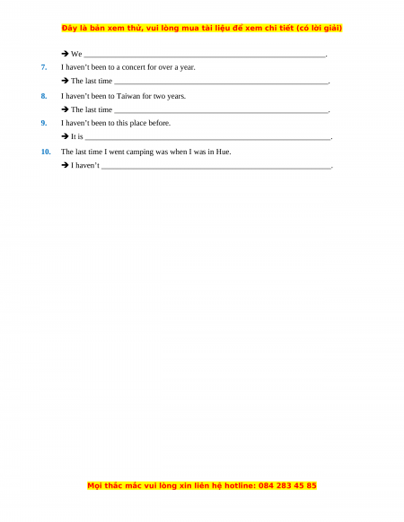 (Hoàn thành câu sao cho nghĩa không đổi, sử dụng từ cho sẵn đầu câu).
