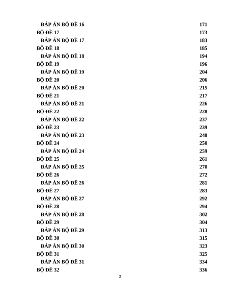 ĐÁP ÁN BỘ ĐỀ 16 171 BỘ ĐỀ 17 173 ĐÁP ÁN BỘ ĐỀ 17 183 BỘ ĐỀ 18 185 ĐÁP ÁN BỘ ĐỀ 18 194 BỘ ĐỀ 19 196 ĐÁP ÁN BỘ ĐỀ 19 204 BỘ ĐỀ 20 206 ĐÁP ÁN BỘ ĐỀ 20 215 BỘ ĐỀ 21 217 ĐÁP ÁN BỘ ĐỀ 21 226 BỘ ĐỀ 22 228 ĐÁP ÁN BỘ ĐỀ 22 237 BỘ ĐỀ 23 239 ĐÁP ÁN BỘ ĐỀ 23 248 BỘ ĐỀ 24 250 ĐÁP ÁN BỘ ĐỀ 24 259 BỘ ĐỀ 25 261 ĐÁP ÁN BỘ ĐỀ 25 270 BỘ ĐỀ 26 272 ĐÁP ÁN BỘ ĐỀ 26 281 BỘ ĐỀ 27 283 ĐÁP ÁN BỘ ĐỀ 27 292 BỘ ĐỀ 28 294 ĐÁP ÁN BỘ ĐỀ 28 302 BỘ ĐỀ 29 304 ĐÁP ÁN BỘ ĐỀ 29 313 BỘ ĐỀ 30 315 ĐÁP ÁN BỘ ĐỀ 30 323 BỘ ĐỀ 31 325 ĐÁP ÁN BỘ ĐỀ 31 334 BỘ ĐỀ 32 336 3