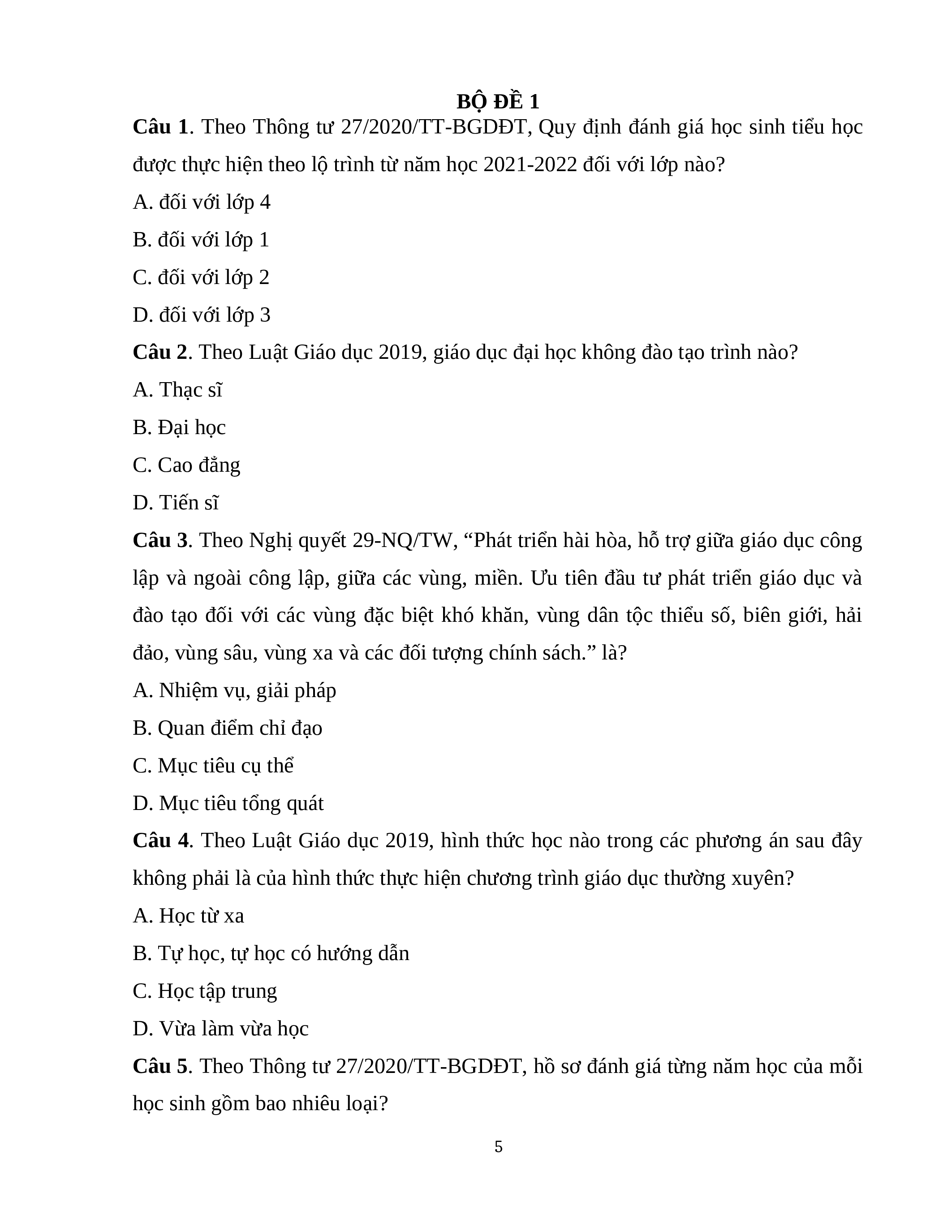BỘ TÀI LIỆU TRẮC NGHIỆM ÔN THI